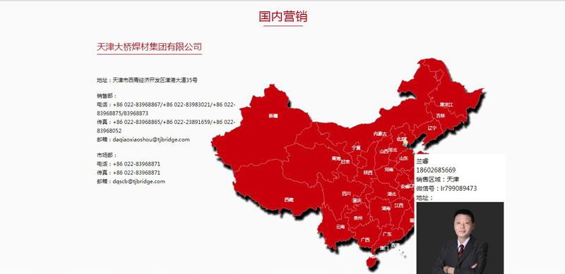 大橋焊材在全球擁有龐大的營(yíng)銷(xiāo)體系,僅國(guó)內(nèi)就有三十多個(gè)營(yíng)銷(xiāo)中心。如果能讓訪客清晰直觀的了解各個(gè)營(yíng)銷(xiāo)中心的聯(lián)系方式,成為大橋最希望解決的問(wèn)題。如果采用傳統(tǒng)的文本形式,不僅破壞網(wǎng)站的整體美感,也不利于訪客的快速查找。對(duì)此,我司解決方案如下:在中國(guó)地圖和世界地圖上,對(duì)所有的營(yíng)銷(xiāo)中心進(jìn)行標(biāo)記,訪客只需晃動(dòng)鼠標(biāo),就能彈出對(duì)應(yīng)區(qū)域的營(yíng)銷(xiāo)中心詳細(xì)信息。