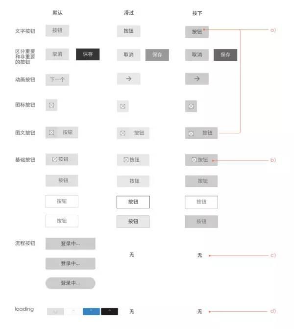 再舉個(gè)例子,我們看到網(wǎng)站上有一個(gè)按鈕,設(shè)計(jì)得挺漂亮,我們以為那就是一個(gè)按鈕。但是在設(shè)計(jì)師眼里,這個(gè)按鈕有好幾種形態(tài)(默認(rèn)、劃過、按下),只有都設(shè)計(jì)好了,才能給使用者好的體驗(yàn)。而這些地方的設(shè)計(jì),幾乎是被使用者忽略的。