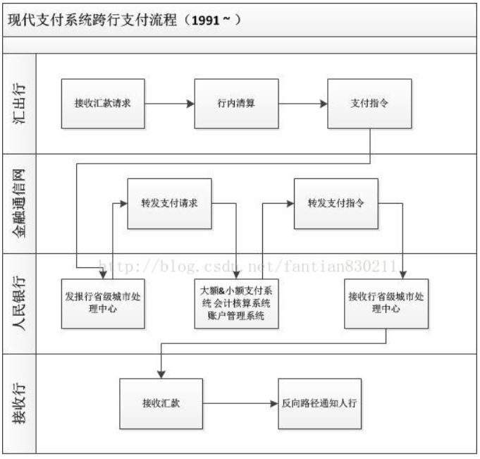 3. 央行負(fù)責(zé)跨行的清算,注意業(yè)務(wù)發(fā)生在城市處理中心;